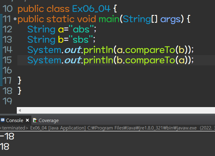 | compareTo() | 같으면 0반환, 문자열의 순서를 알기위해 |