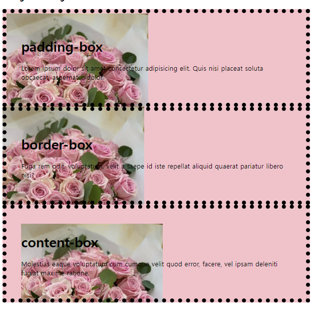 padding-box 패딩의 가장자리의 왼쪽 상단 모서리에서 시작