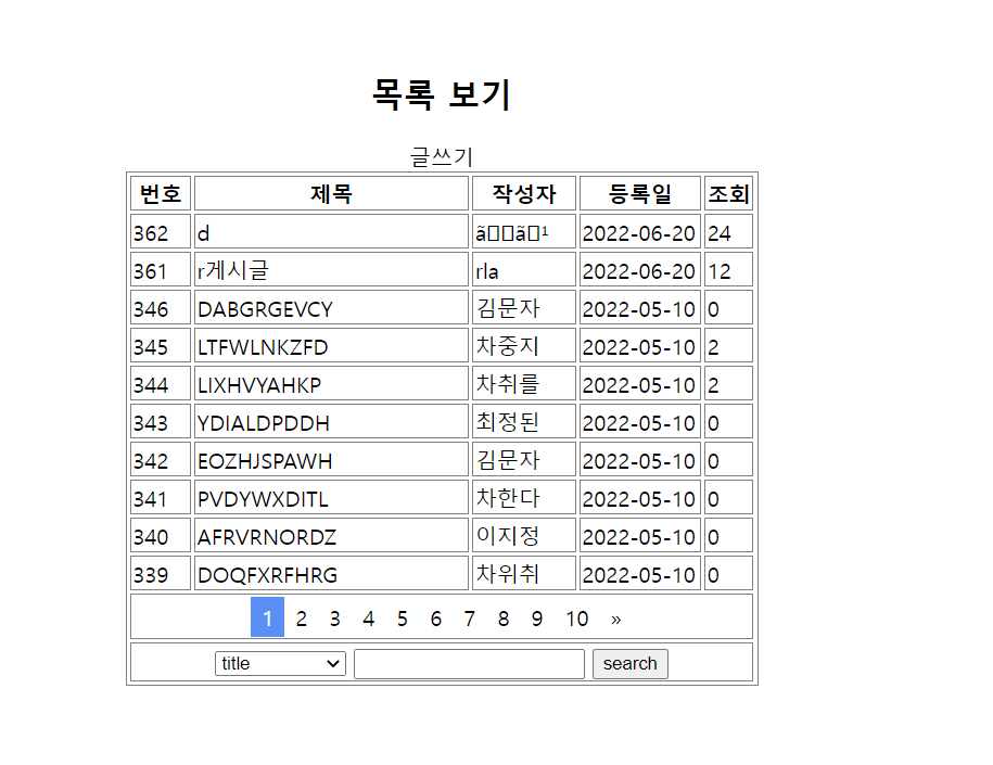 - 핸들러객체 CommandHandler 인터페이스 String process(request,response) ->ListHandler.java WriteHandler.java 등등