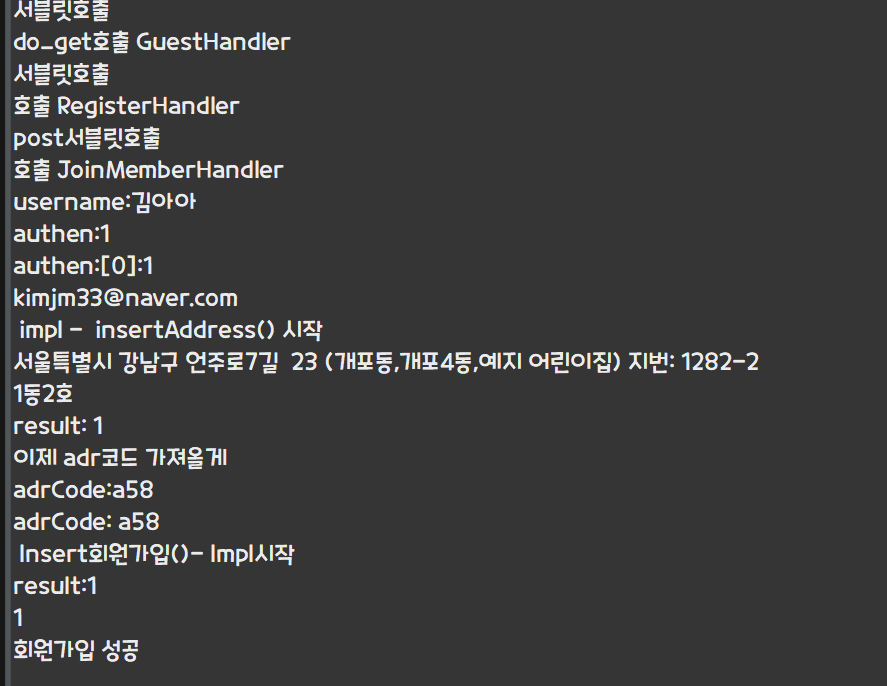 int result= dao.insertOneMember(con, memberDTO, adrCode);