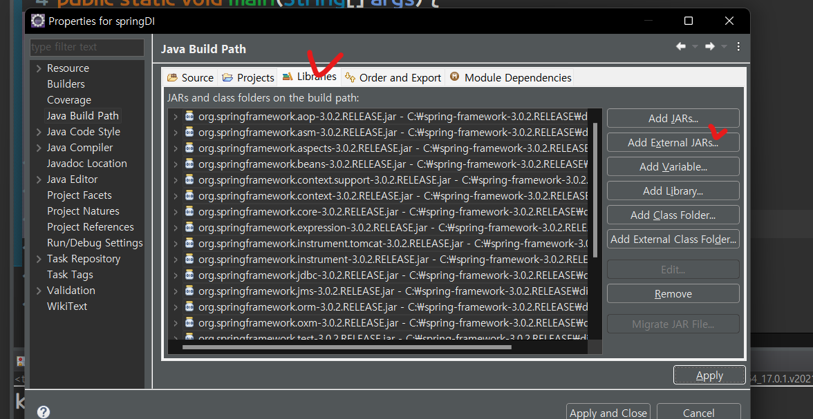 * 스프링 주요 모듈(jar) 추가