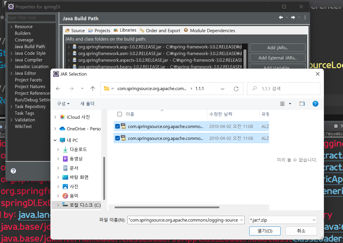 * 2)라이브러리에 jar파일추가
