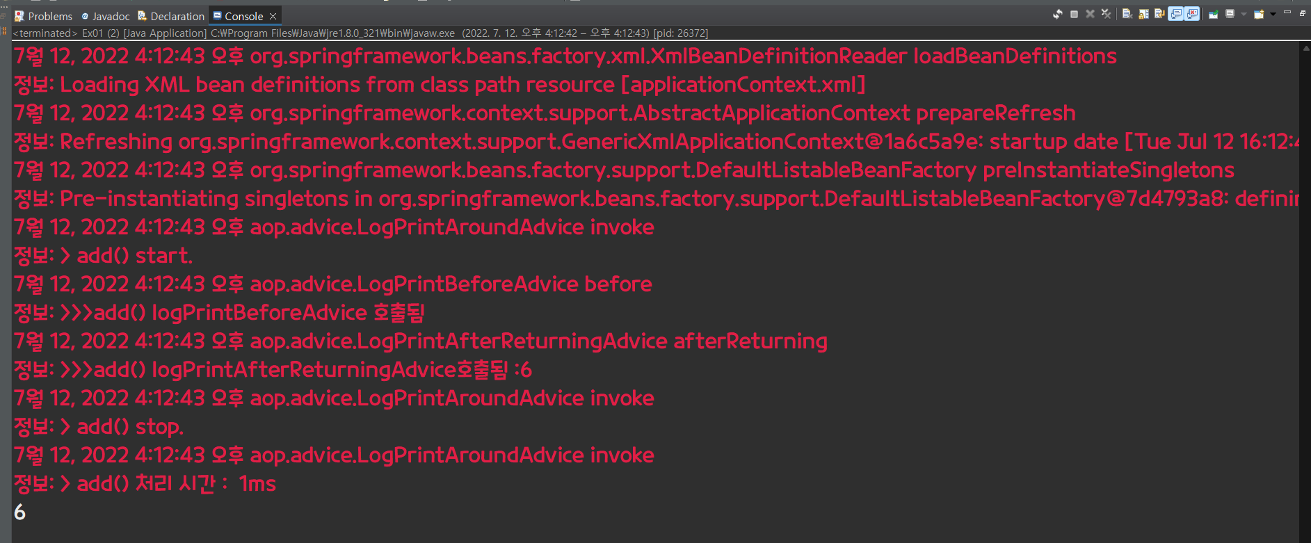 정보: Refreshing org.springframework.context.annotation.AnnotationConfigApplicationContext@887af79: startup date [Tue Jul 12 10:17:28 KST 2022]; root of context hierarchy