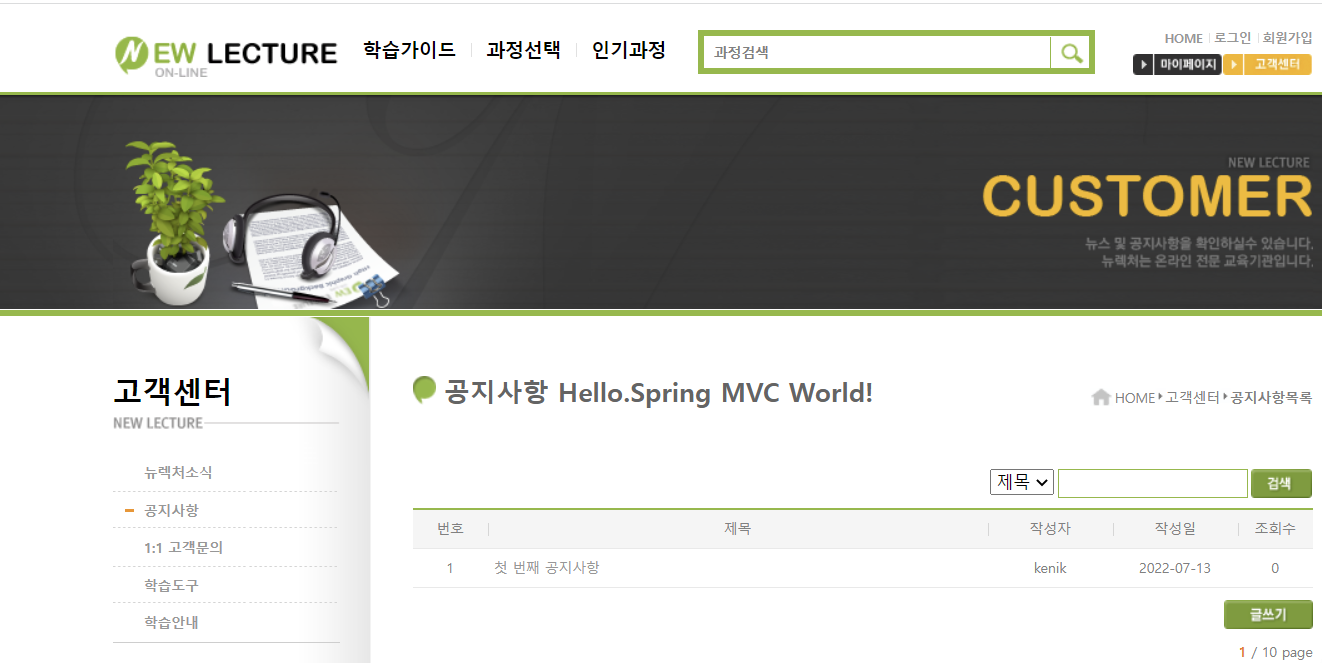 customer 파일안에 notice.htm 샘플파일(요청하기위해) 만듬