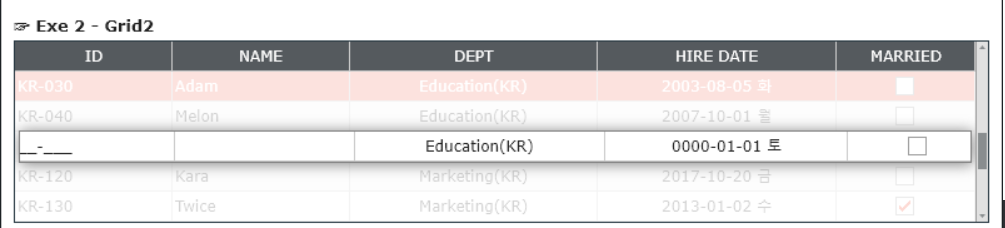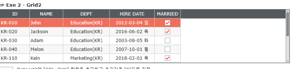 Grid2의 맨 앞쪽에 빈 컬럼을 추가하고 생성한 Dataset컬럼(COL_CHK) 바인딩
