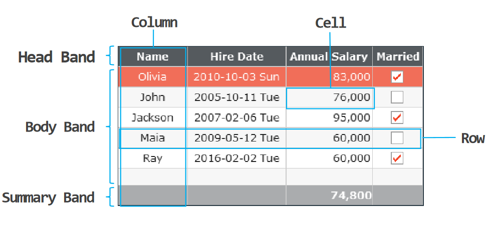Grid는 항상 Dataset과 바인딩해서 사용.